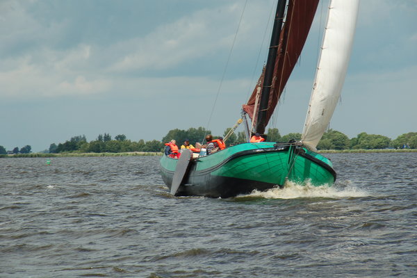 De groep die eerst met het skutsje heeft gezeild, zal dan weer vanuit Woudsend of Koudum naar Heeg fietsen.